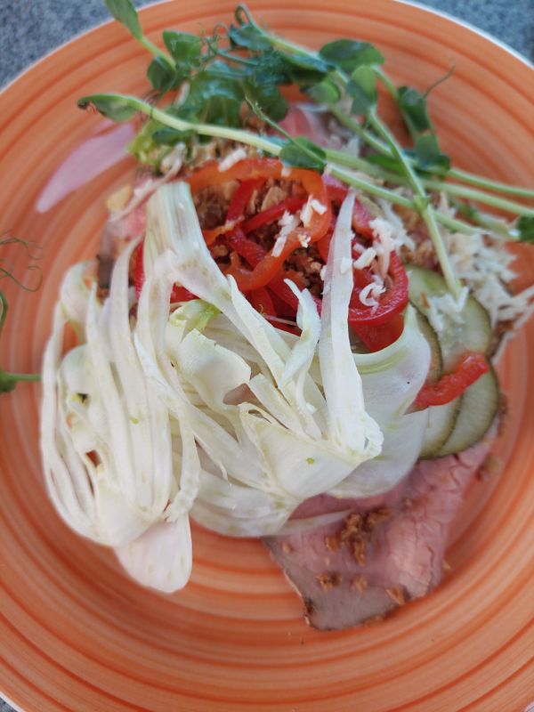 Von Super Brugsen hatte ich fertiges Smörrebröd von der Fleischtheke mitgenommen, super lecker!