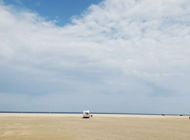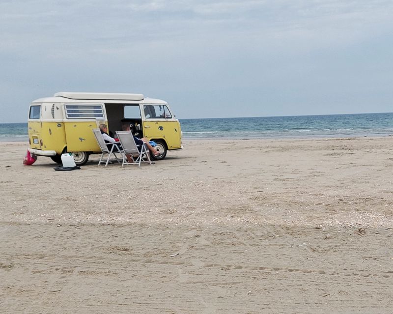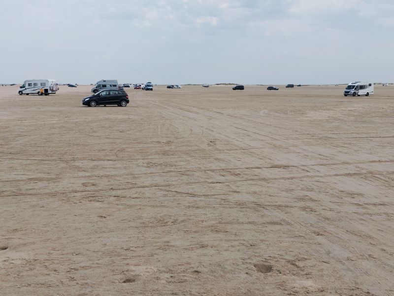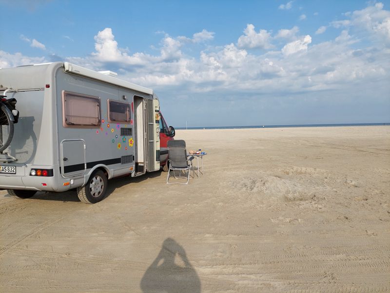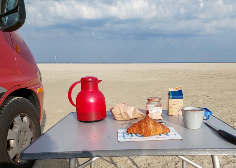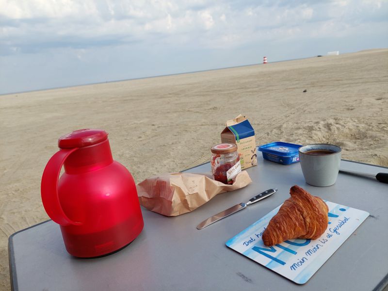 Heute wird am (noch) menschenleeren Strand gefrühstückt.
