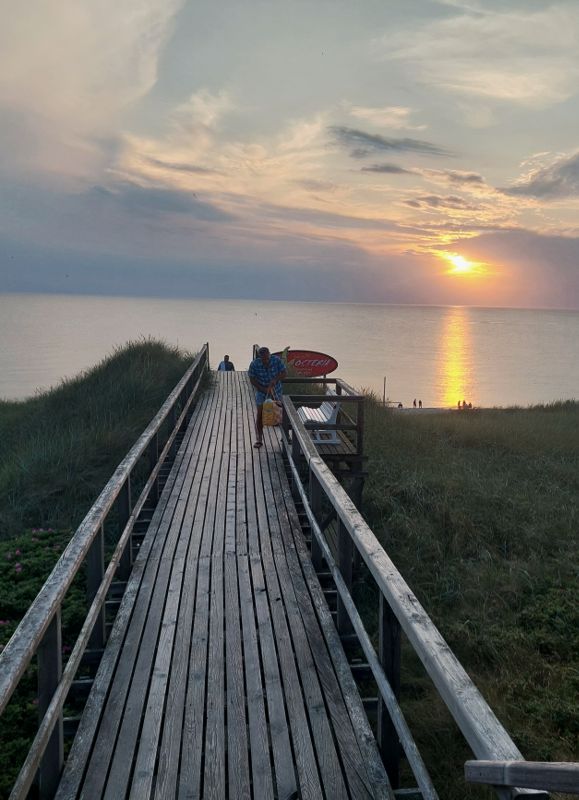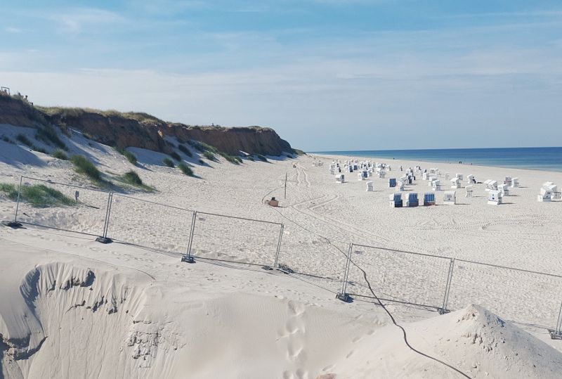 Die Dame im Kassenhäuschen am Strandzugang schickt mich einen Zugang zurück. Ich hatte mit einer pompösen Klippe gerechnet. Aber was für eine mickrige Böschung! Vielleicht in der roten Abendsonne ja ganz hübsch.