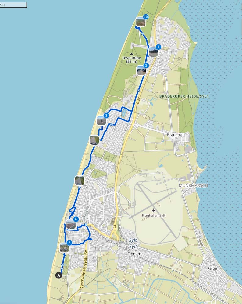 Über den Strönwai, die Meile der Schönen und Reichen, geht’s weiter zum Campingplatz in Kampen, auch total voll gestopft.