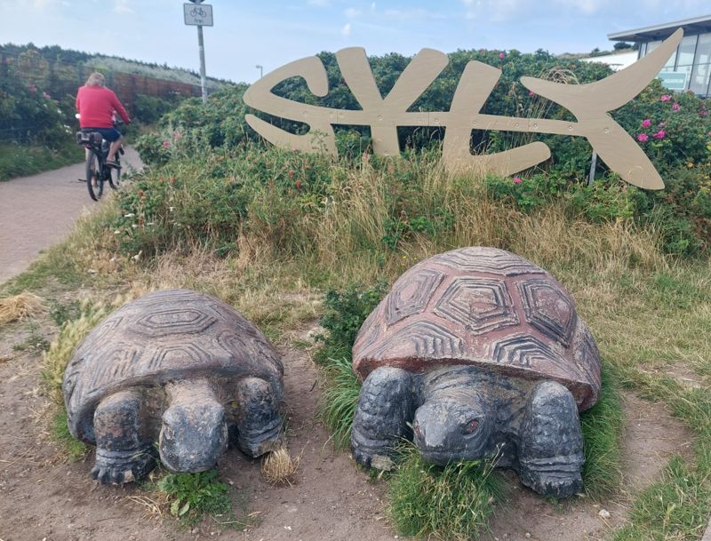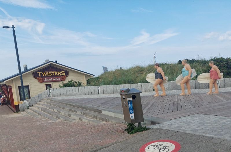 Auch die Reisenden Riesen im Wind stehen immer noch in Westerland am Bahnhof rum.