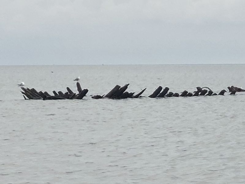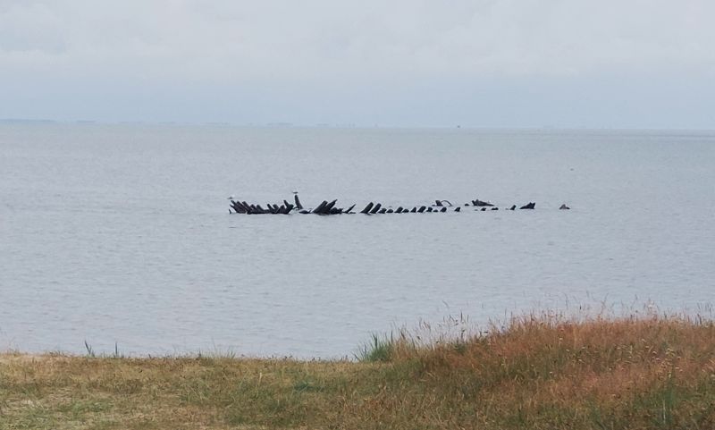 Hier liegt das alte Wrack Mariann vorm Strand, es schaut nur bei Niedrigwasser aus dem Meer.