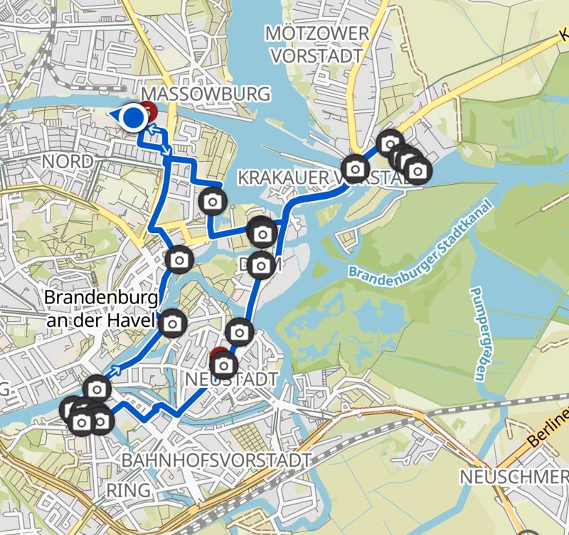 Gegen Abend radel ich noch die anderen Stellplätze in Brandenburg ab, zuerst zum Stellplatz am Dom. Es sind 5 Plätze. Der Standort direkt an der City ist ganz ok, vor allem für einen kurzen Stop.