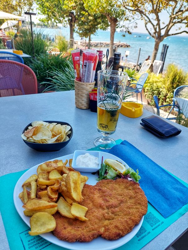 Zum Erfrischen in den See und dann ins Golden Beach. Auch das Schnitzel ist total lecker und die Aussicht natürlich nur sensationell.