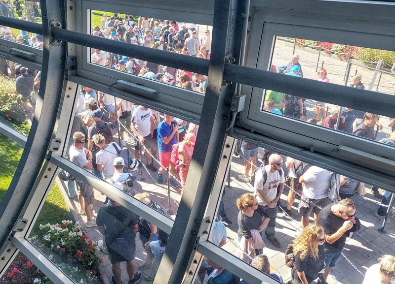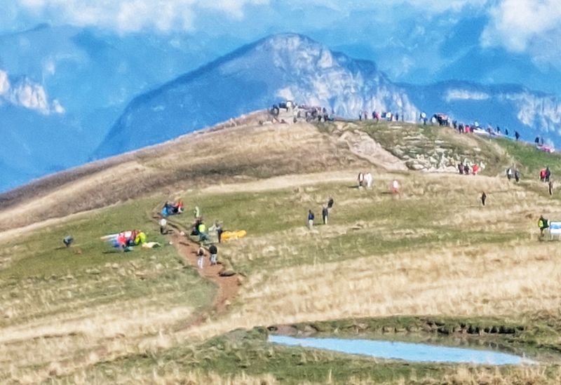 Nach der kleinen Gipfelrunde geht’s wieder runter. Unten ist es brechend voll.