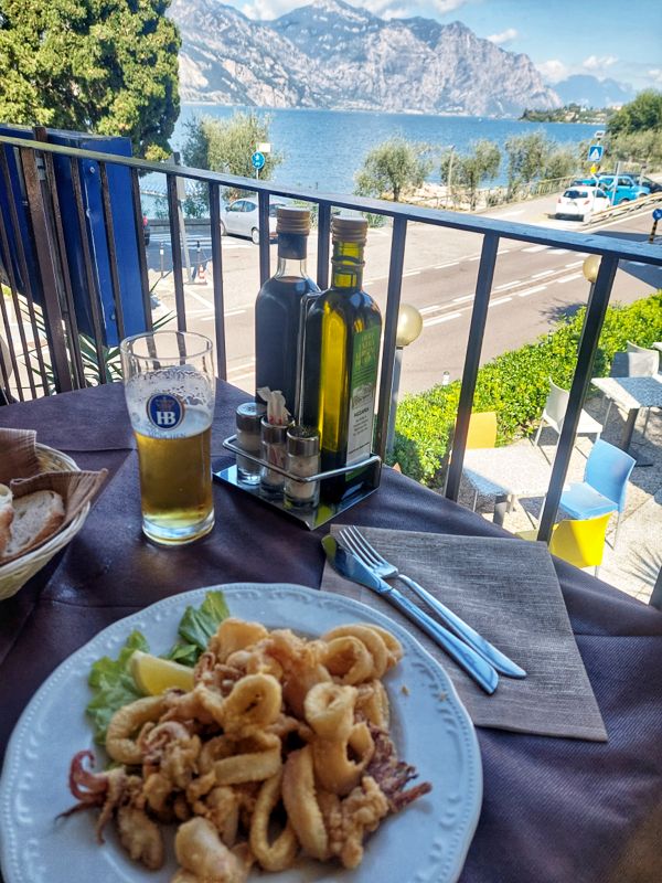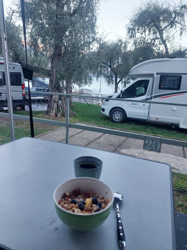 Und dann geht’s noch ein letztes Mal in den Gardasee und auf die Terrasse der Bar des Campingplatzes.
