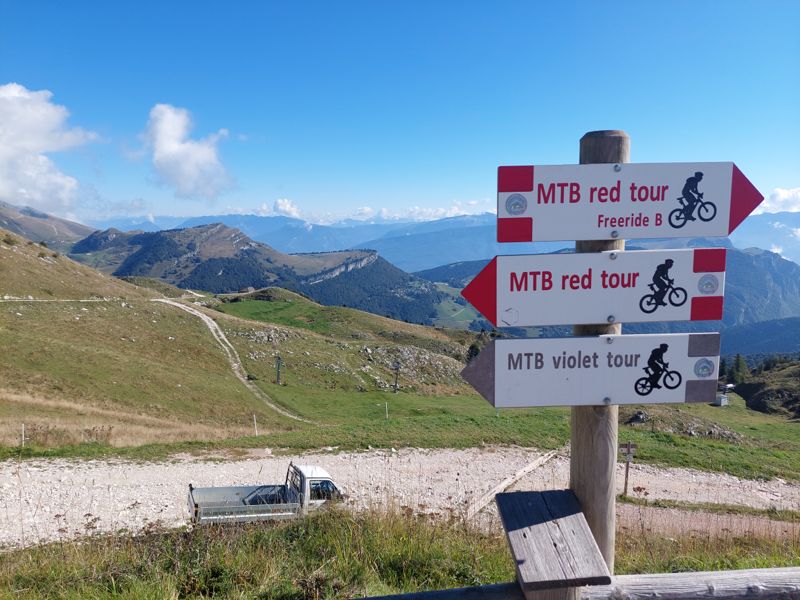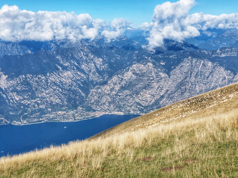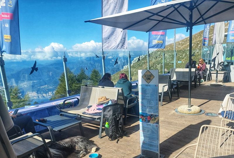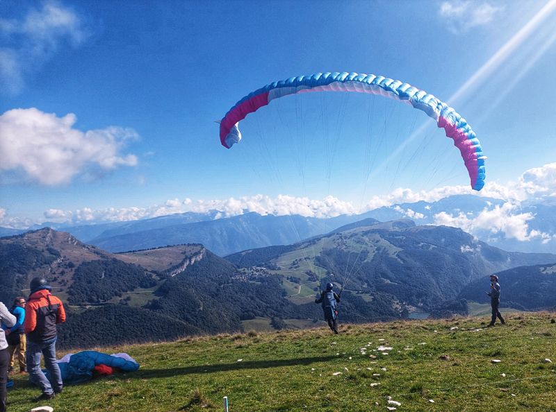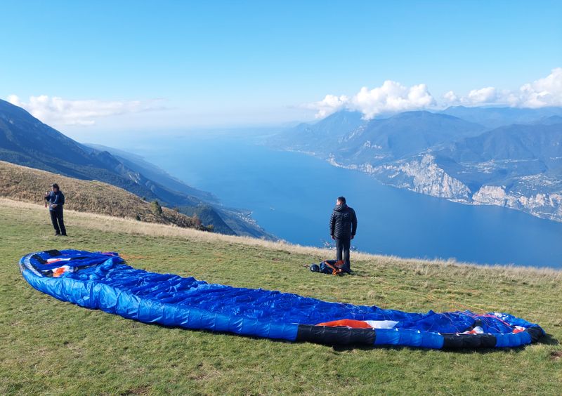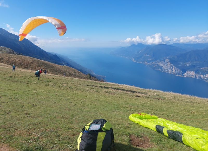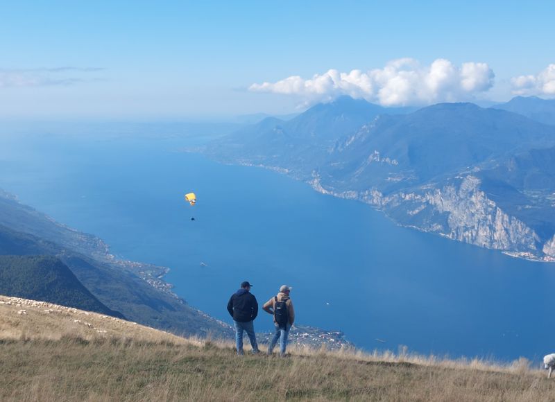 Die Sicht auf den Gardasee ist gigantisch, es gibt mehrere Wander- und MTB-Routen und die Gleitschirmflieger sind in Gange.