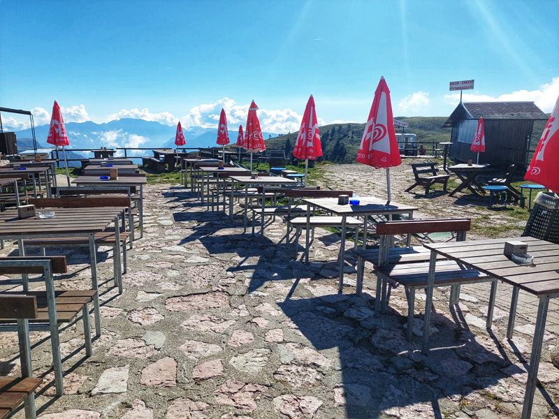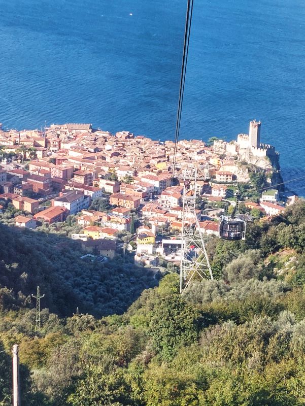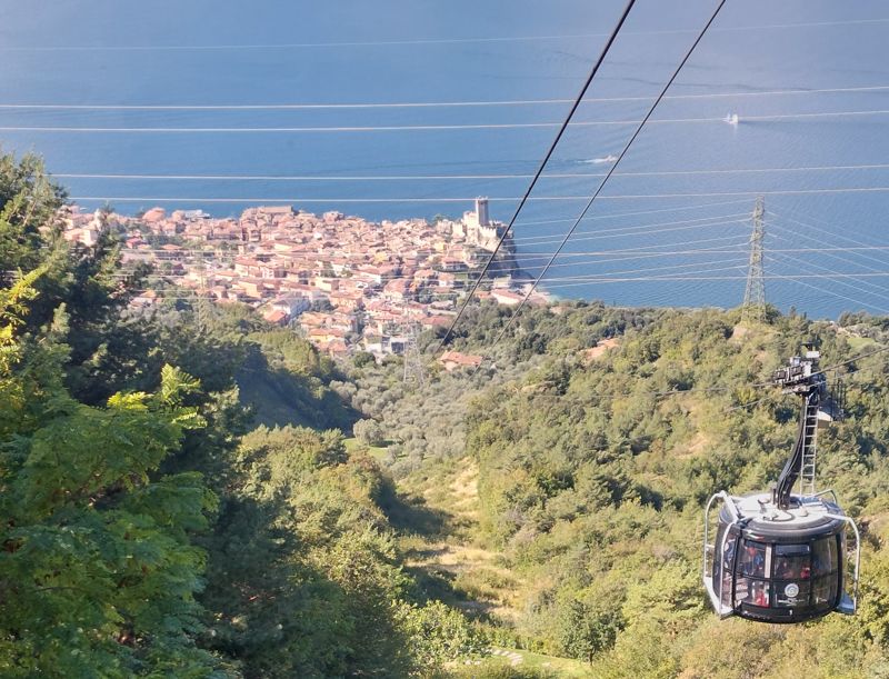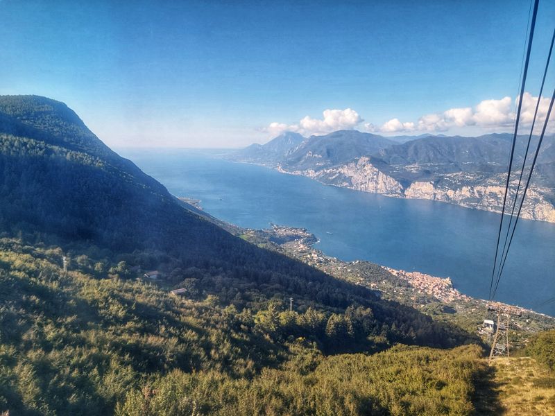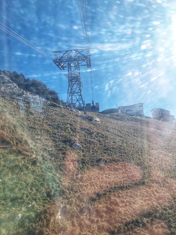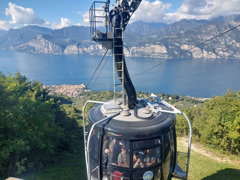 Nach dem Frühstück geht’s auf den Monte Baldo. Heute Morgen ist an der Seilbahnstation nur wenig los, in einer halben Stunde bin ich in der Gondel und in 20 Minuten oben.