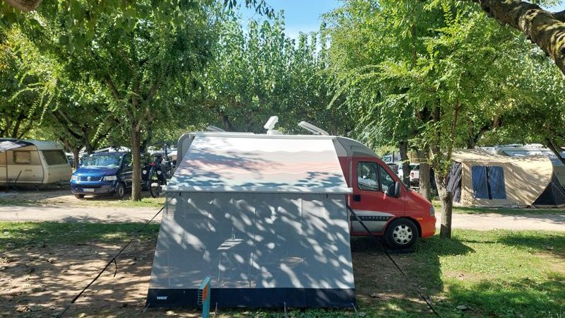 Voll, voll, voll – überall einfach nur voll mit Womos. Viele alte Menschen, Rentner mit neuen Dickschiffen, die sie kaum bewegen noch bedienen können. Aber auch viele junge Paare mit kleinen Kindern und teuren VW-Bussen oder Kastenwagen. Ich hatte vorher gebucht, allerdings nicht auf einem meiner Lieblingscampingplätze, die waren alle voll. Auf der Anfahrt und auch im Weiteren hatte ich Glück und fand irgendwie immer noch ein Plätzchen, insbesondere durch frühes Anfahren.