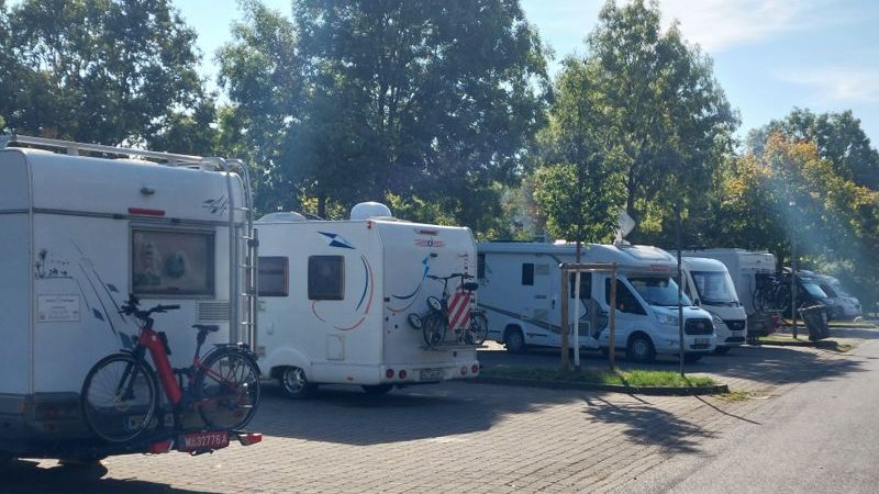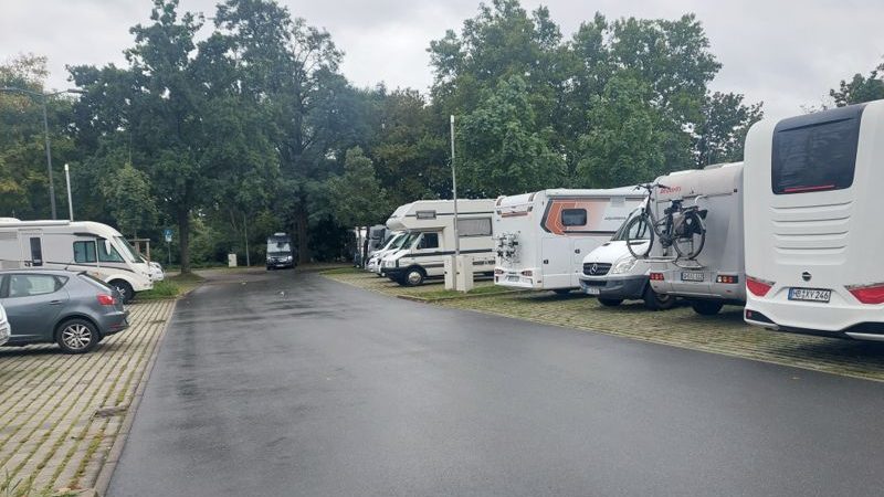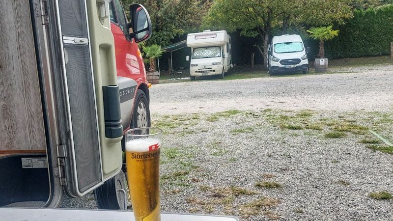 10,00 € muss am Automaten bezahlt werden. Hinterm Stellplatz verläuft die Bahn, ist nachts aber zu ertragen. Strom gibt’s für 1,00 €. Für eine Nacht ok. Am späten Nachmittag ist der Platz voll, es kommen aber trotzdem viele weitere Womos bis spät in die Nacht.