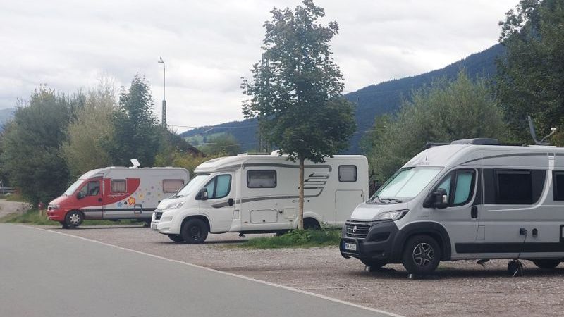 mitten im Ort, 30,- / 24 Stunden mit Strom und Entsorgung. Duschen gibt’s nicht, nur Toiletten. Es ist eng, halt ein Stellplatz, aber ich kann noch gut hinterm Womo sitzen.