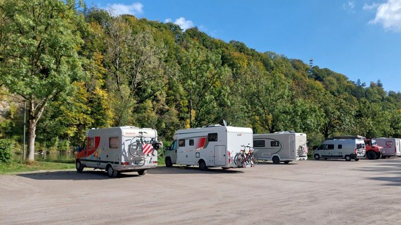 schlichter großer Parkplatz aber direkt an der Isar und unmittelbar am Ort, 16,00 €/24 Std., kleines WC-Häuschen und Entsorgung vorhanden. Gegen Abend füllt sich der Platz.