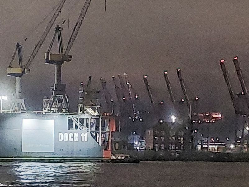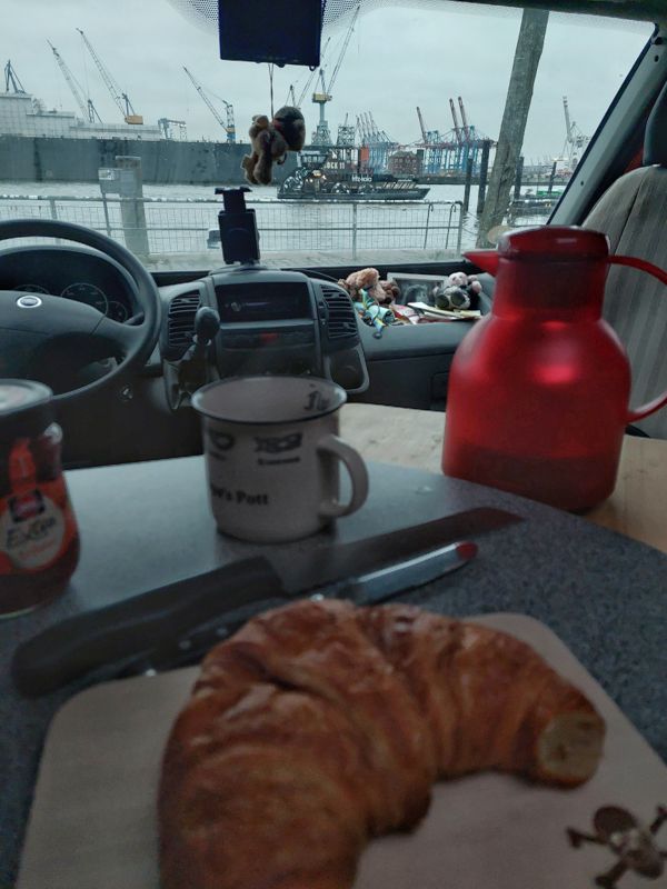 Gestern Abend habe ich noch lange vom Womo aus dem Treiben im Hamburger Hafen zugeschaut.