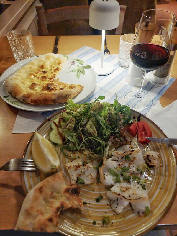 Die Restaurants machen alle erst wieder gegen 17:00 Uhr auf. Ich habe mir die Trattoria Leo ausgesucht – watt lecker 😋