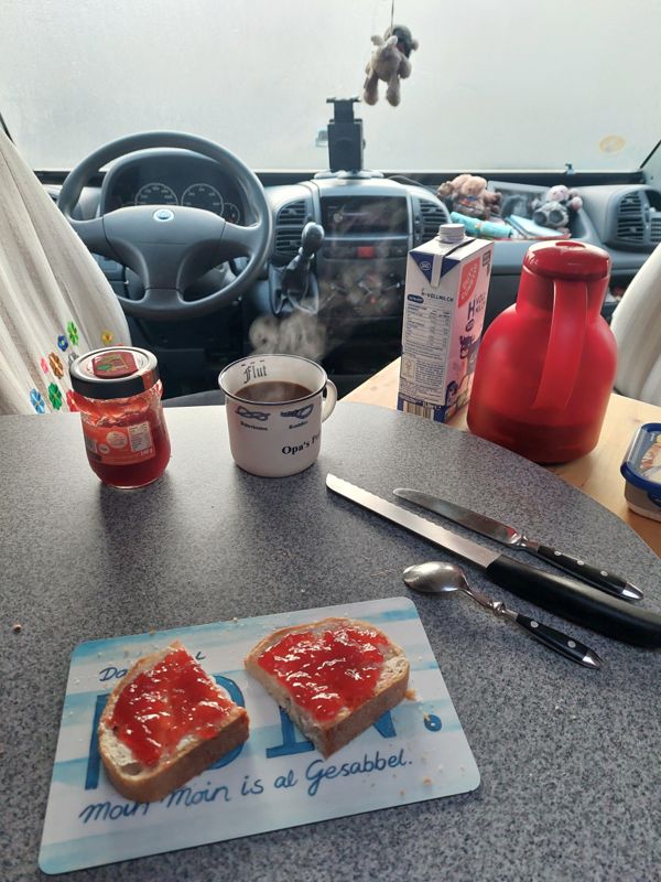 Und auf der anderen Seite nebenan ist Rewe mit einem Bäcker, mal gucken wies hiesige Bier schmeckt.