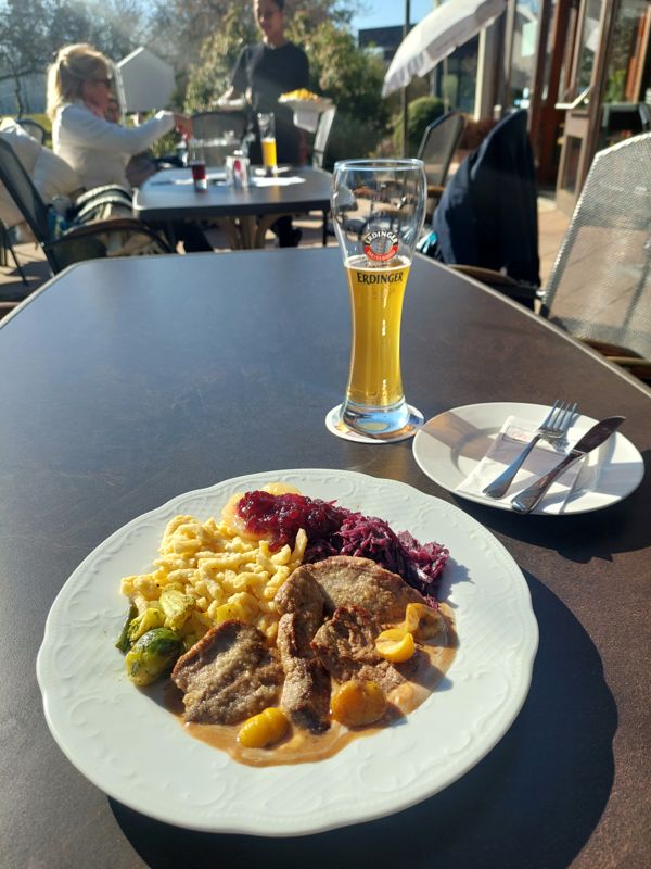 Gleich nebenan im Kurpark gibt’s das Restaurant Café im Park mit einer Außen-Terrasse. Gut, dass ich weiter bin, hier ist’s einfach nur herrlich.