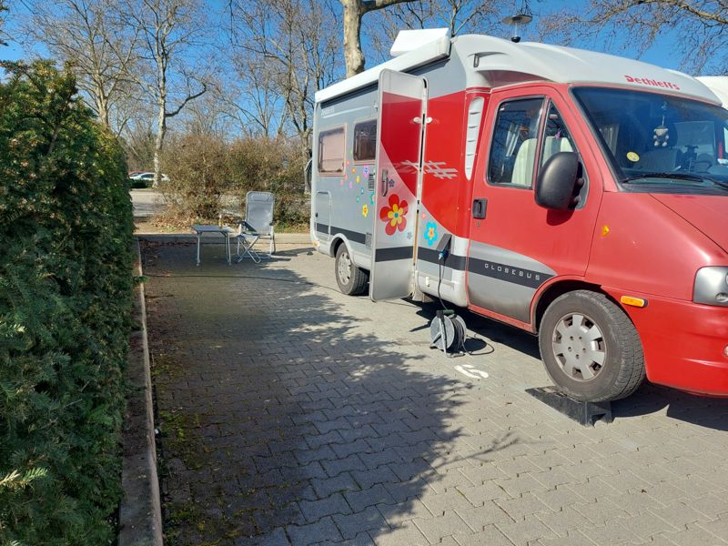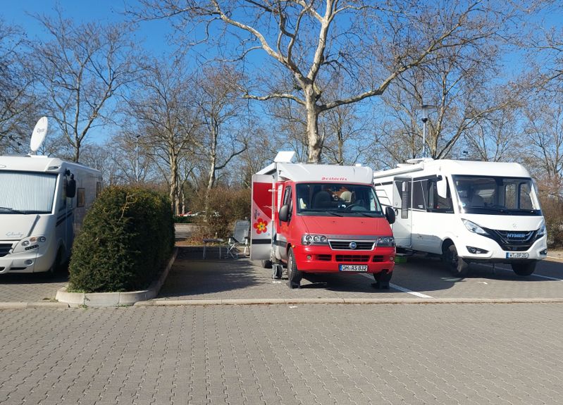 Am späten Nachmittag sind alle 38 Plätze des Wohnmobilstellplatzes belegt!