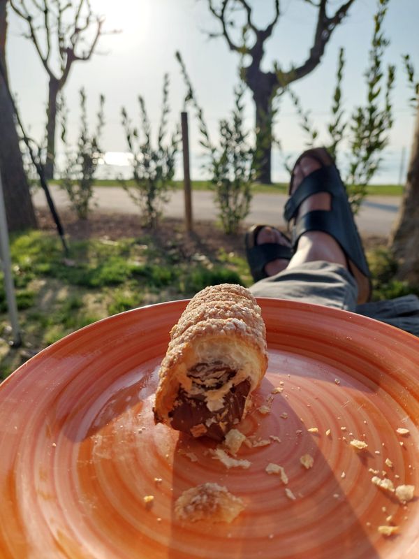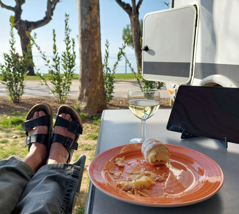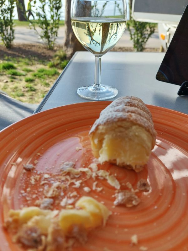 Mittags wieder ins Restaurant des Campingplatzes. Ich weiß garnicht, warum das nur mittelmäßige Bewertungen hat, bisher war das Essen für ein Campingplatz-Restaurant exzellent, und die Lage ist natürlich fantastisch.