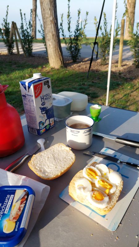 Der Campingplatz ist so gut wie voll, nur noch ein paar Schattenplätze – Wahnsinn – überwiegend Bayern und Baden-Württemberger!