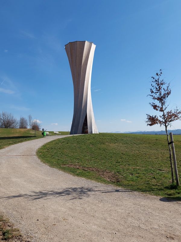 Nach einer Mittagspause radel ich um den Schwarzensee und zum Aussichtsturm der ehemaligen Landesgartenschau in Wangen.