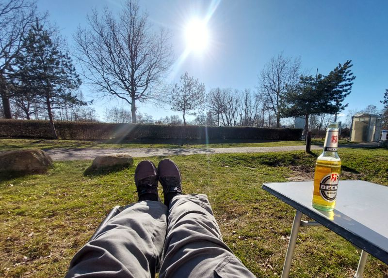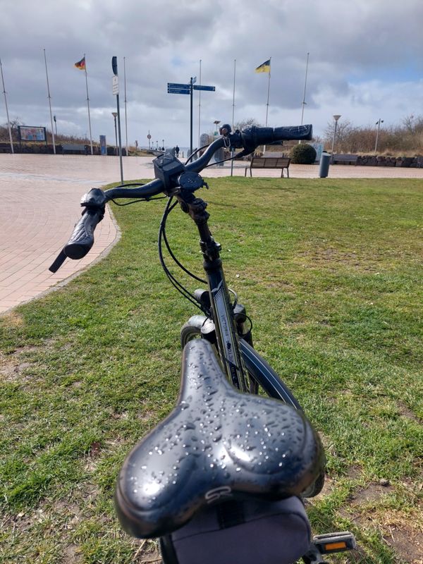 Nachmittags radel ich bei typischem Aprilwetter zum Campingplatz Seeblick zu Katrin und Diggen.