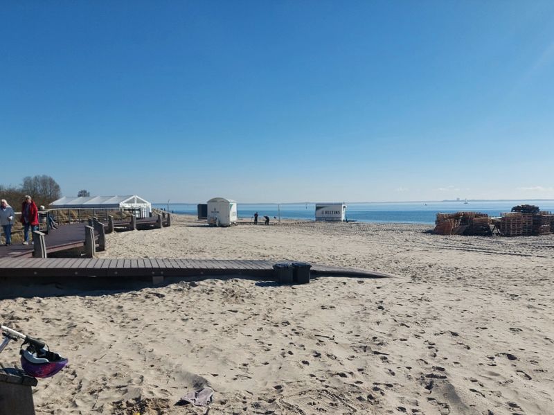 Gestern ging’s los. Die Stellplätze in Grömitz und Travemünde sind laut Internet voll, also wird der Platz in Scharbeutz auch ziemlich überfüllt sein. Daher nach Pelzerhaken, hier ist’s tatsächlich noch relativ leer.