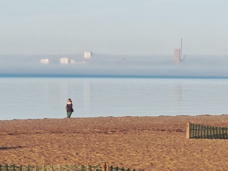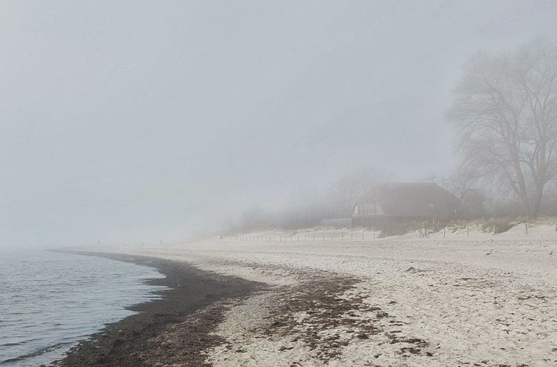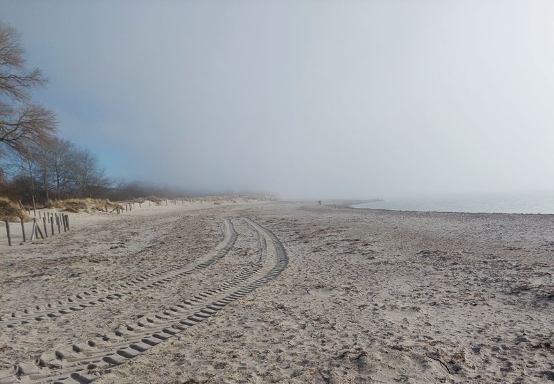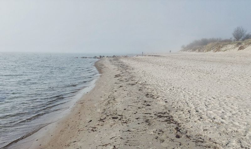 Beim morgendlichen Strandspaziergang zieht Nebel auf.