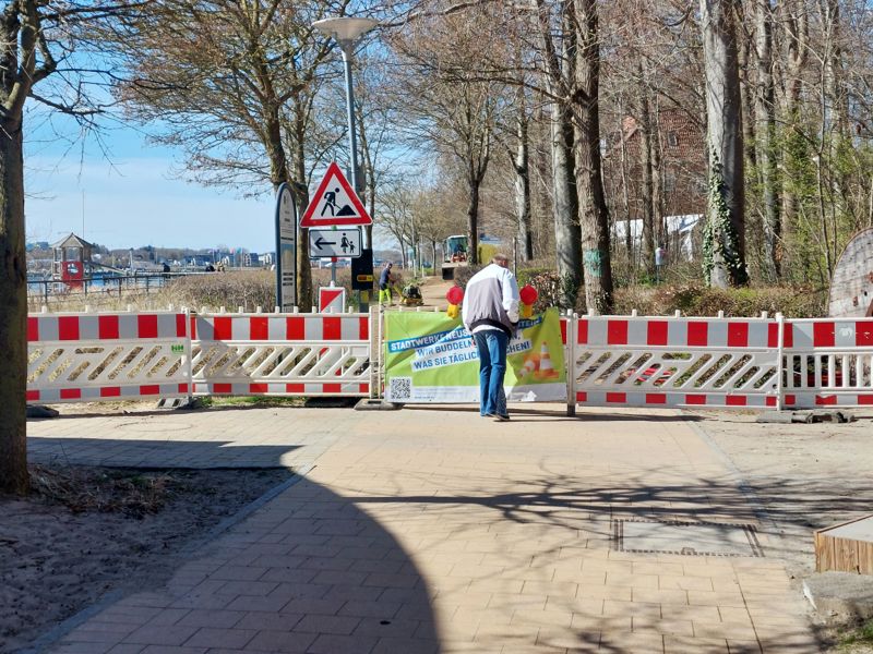 Nach einer kurzen Siesta wollte ich eigentlich nach Neustadt, aber der Radweg dorthin ist in Höhe der Badeanstalt seit Herbst letzten Jahres immer noch gesperrt. Aber Heute war sogar ein einzelner Bauarbeiter zu erkennen!