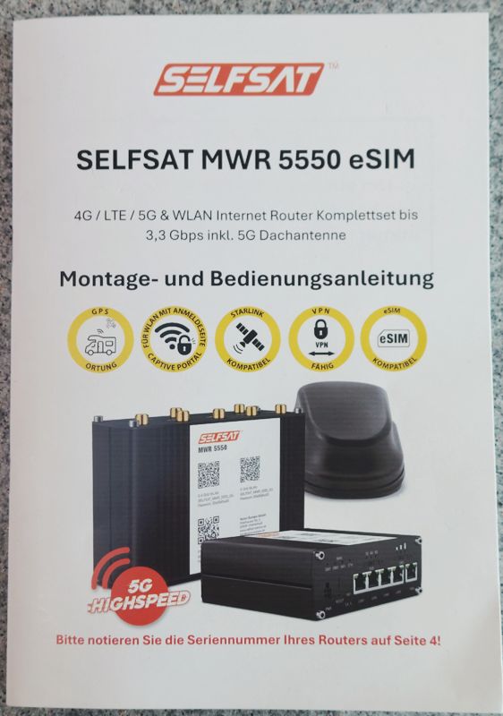 Meine Fritz Box im Womo hat eigentlich gute Dienste geleistet, die Verteilung des Internets im und ums Womo hat gut funktioniert. Allerdings die Übernahme des Wlan auf einem Stell- oder Campingplatz ist kompliziert und bei einer speziellen Anmeldung mit Einwilligungsseite sogar unmöglich. Deshalb habe ich mir jetzt einen Router von SELFSAT gekauft, der soll das alles problemlos können.