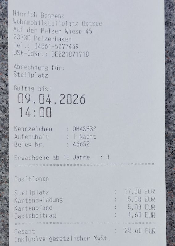Die Sonne scheint und ich muss los alles ausprobieren. Vorher muss ich tanken, eigentlich wollte ich warten, bis die Preise wieder runter gehen. Ja nun, nutzt nichts, wer weiß wo ich einen Platz finde – 60,- € für 24 Liter !!! Der Stellplatz in Scharbeutz ist so gut wie voll, 2 Plätze im Schatten gibt’s noch. In Pelzerhaken sieht’s besser aus, sogar mein Lieblingsplatz ist frei.