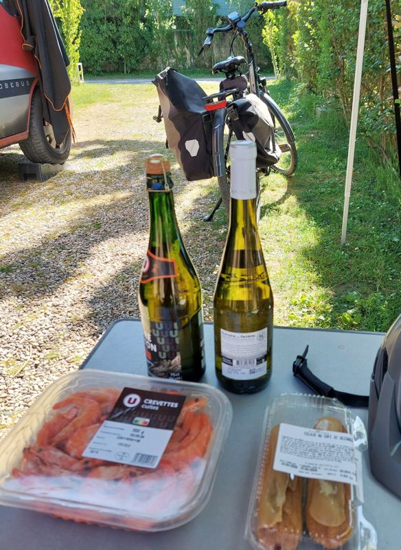 Nach dem Frühstück radel ich zum Super U, um zu erkunden ob es dort eine Tankstelle gibt. Die ist zwar recht eng, aber mein Womo ist ja auch nur Mini.