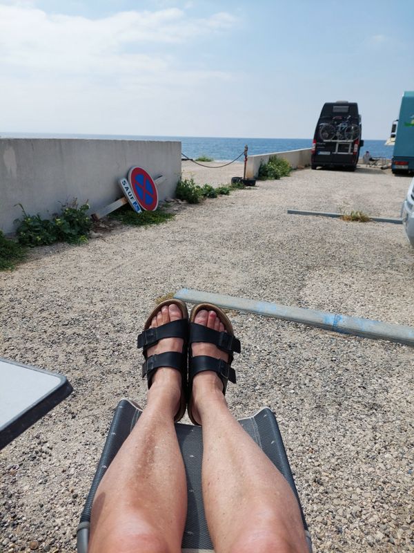 Ich lande in Carro, auf einem riesigen Stellplatz direkt am Meer. Ich habe Glück und ergatter sogar einen Platz in der ersten Reihe. Die Plätze sind zwar schmal, aber lang, so dass man vorm Womo sitzen kann. Für 11,00 € ohne Strom und Sanitäranlagen kann man bei der Lage nicht meckern.