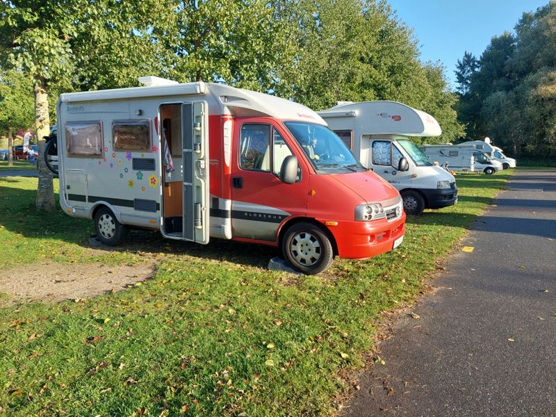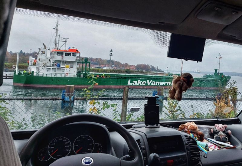 Gestern gegen Abend waren dann alle 13 Stellplätze in der 1. Reihe besetzt. Gleich um die Ecke gibt's Famila mit einem Bäcker. Ausgiebig frühstücken und Schiffe gucken. Ich überlege, ob ich noch weiter fahre, doch dann entdecke ich auf der Frontscheibe die ersten Regentropfen ... also ab nach Hause.