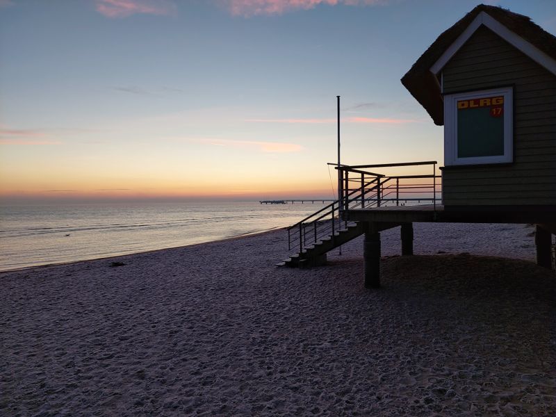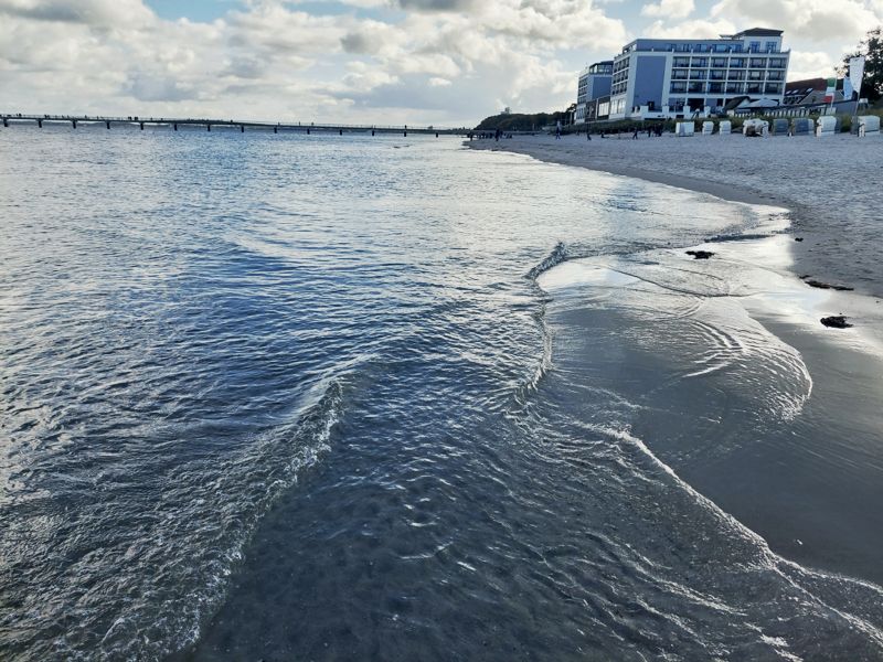 Die Frühstücksbrötchen hole ich natürlich von Brede. Heute Vormittag geht's zur neuen Seebrücke ... und dann an den Strand. Mittag im Grande Beach Café. Nach einer Siesta ins Wasser. Und noch ein Bisschen mit dem Radel los. Danach aufwärmen.