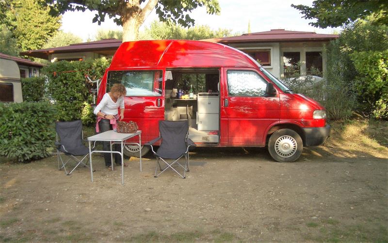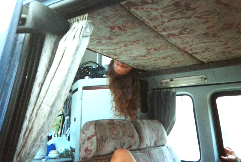 Seinen Namen hatte der Eier­karton von seiner hellbraunen Eier­schalen Farbe und seiner Größe. Auf allen Cam­ping­plät­zen war er die Attrak­tion, insbesondere wenn wir beide oben aus dem Dach­zelt und unsere drei Mäd­chen unten aus dem Mini­bus klet­ter­ten!