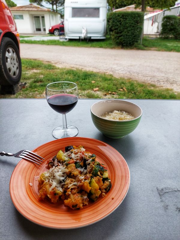 Der Wasserpark ist erst ab 10:00 Uhr geöffnet, also muss morgens ausgiebiges Duschen reichen. Nach dem Großeinkauf in Lazise geht's dann in den Pool. ... und dann gibt's zweites Frühstück, den neuen Wasserkessel ausprobieren. Baden macht hungrig, am Abend ins Restaurant am Pool. Auch der Burger ist lecker, knusprige Pommes, für Campingplatz sehr gut und … Weiterlesen Badetag