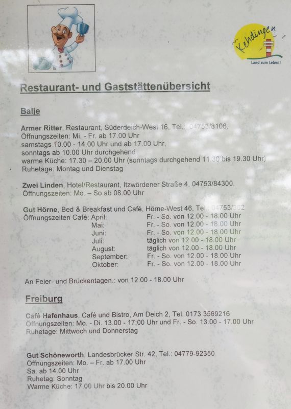 Zum Ausspannen und Fahrradfahren hinterm Deich ist die Gegend ok. Vieles ist auf das Wochenende ausgerichtet, etliche Restaurants haben in der Woche geschlossen. Das Alte Land ist nicht meine Gegend!!!