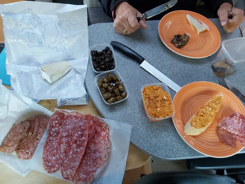 In die Fußgängerzone ist wieder Leben eingekehrt, noch nicht soviel wie früher, insbesondere fehlen die Straßencafés, nur Tschibo hat ein paar Tische draußen. In der Markthalle gibt es wieder frisches Obst und Gemüse, Käse, Wurst und den Türken mit seinen tollen Pasten. Und was entdecken wir da, unsern Lieblings Tresen Italiener von Früher, nichts wie hin. Die Garnelen, die Spaghetti mit Scampies und der Primitivo sind einfach nur köstlich! Für abends nehmen wir uns noch ein paar Leckereien aus der Markthalle mit.