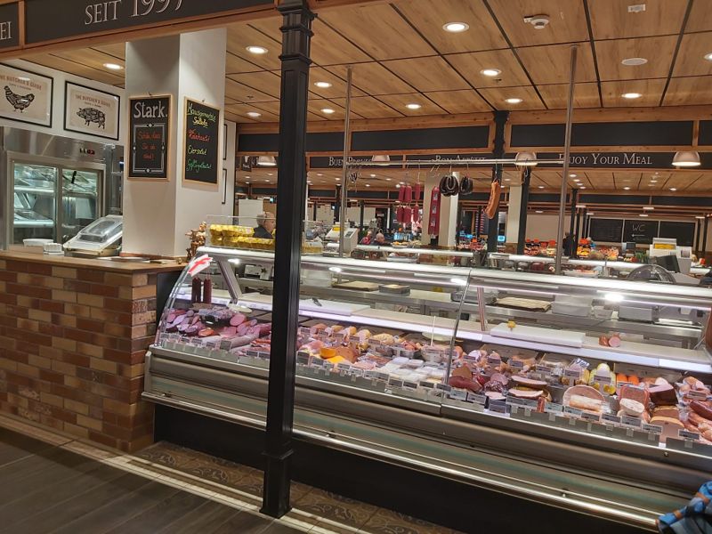 Es geht zum Shoppen in die Hallen am Borsigturm, aber keine Beute. Zum Trost geht’s zum Tresen Italiener, Pasta Scampi und Lachs, lecker!