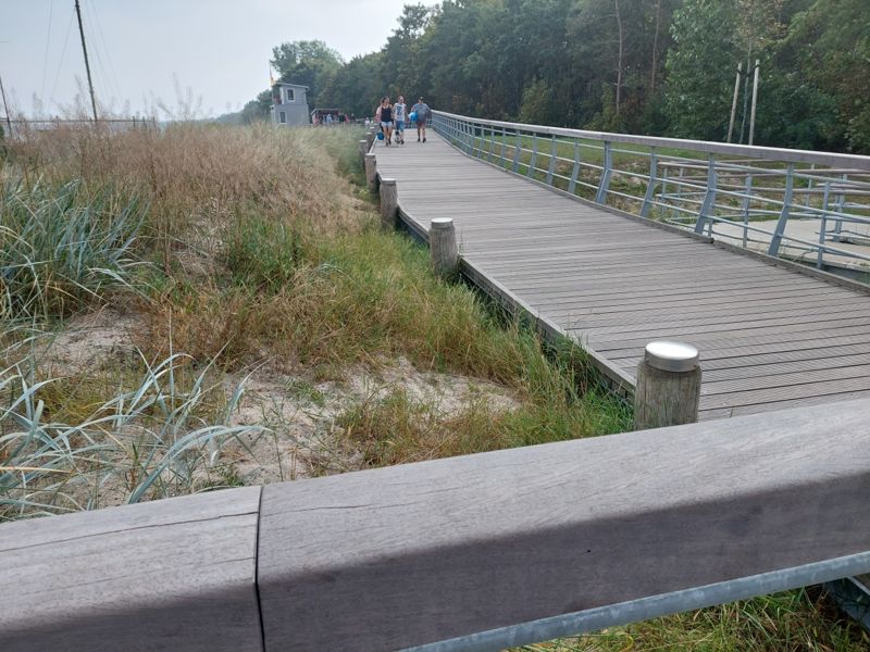 Der Radweg parallel zum Strand wurde neu befestigt und ist breiter. In die Dünen wurde die Dünenpromenade gebaut, ein breiter Holzsteg, der sich an der gesamten Küste erstreckt – das muss man mögen oder auch nicht!