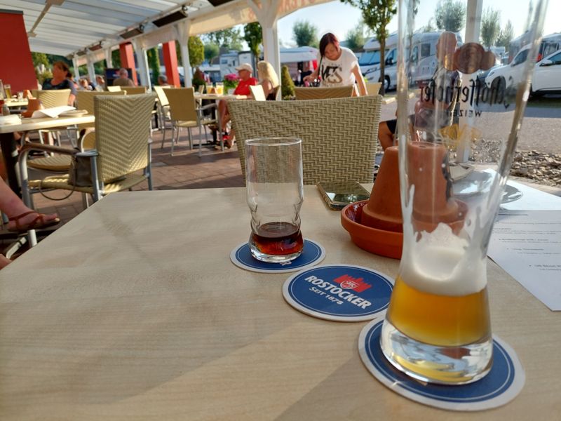 Das Wetter ist bombig, und das im September. Zukünftig brauchen wir wahrscheinlich im Herbst nicht mehr in den Süden fahren, zumindest auch weil die dort absaufen. Am Wochenende fährt bestimmt ganz Deutschland an die Ostsee. Wir haben nur bis Freitag gebucht. Ein Blick auf die Internetseite des Campingplatzes in Kühlungsborn ergibt, bis auf einen Komfortplatz ist dort alles ausgebucht und der ist so teuer, der muss vergoldet sein. Bevor wir jetzt noch länger rumsuchen, verlängern wir lieber hier bis Sonntag, allerdings müssen wir den Platz wechseln.