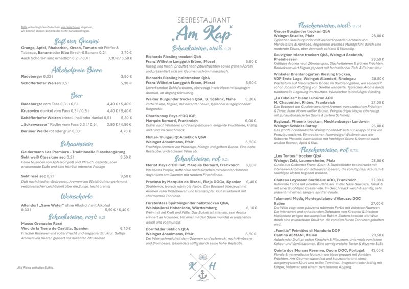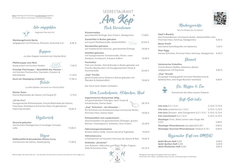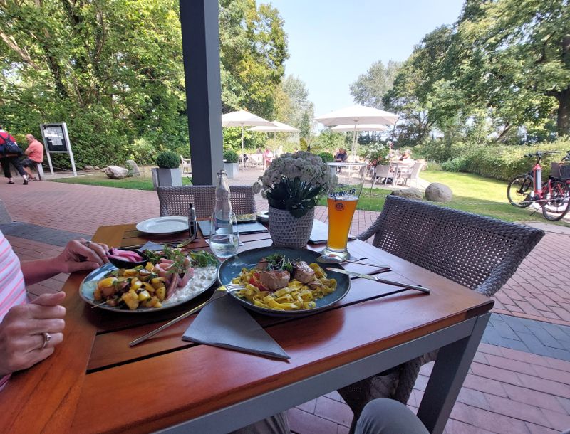 Gleich nebenan ist ein tolles Restaurant „Am Kap“ mit Blick auf den Unteruckersee. Das Rumpsteak und das Hokifilet waren köstlich.