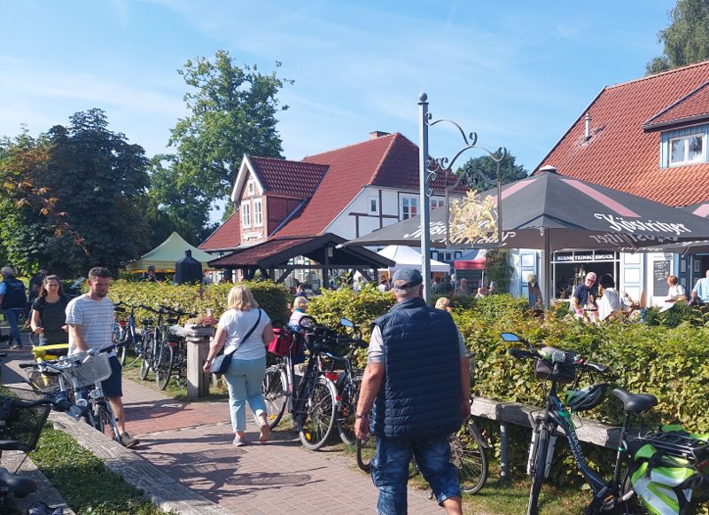 Donnerstags von 10:00 – 14:00 Uhr ist beim Heimatmuseum in Zingst Wochenmarkt. Allerdings standen da nur ein paar Stände mit Andenken und Nippes für die Touries rum.