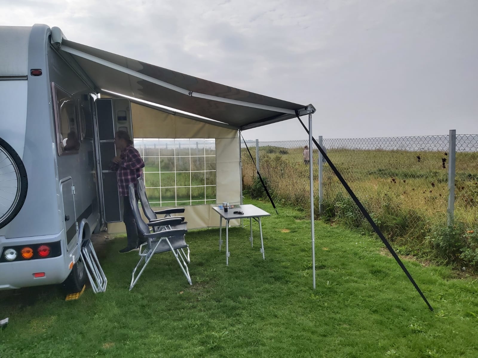 Heute Nacht bin ich zweimal hoch! Es hat ordentlich gestürmt und ich habe nach der Markise gesehen, aber alles ok. Morgens haben wir sie dann eingefahren, da der Wind tagsüber noch stärker werden sollte.