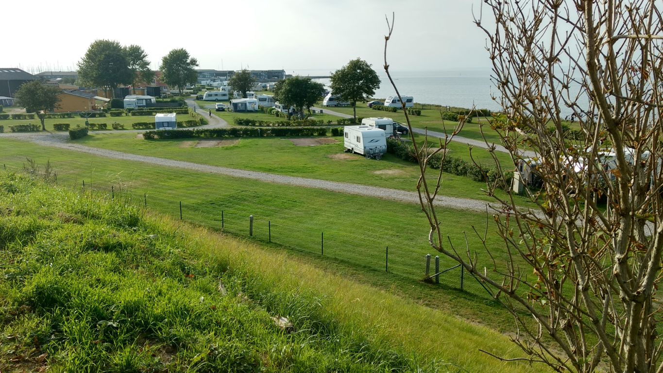 Wir wollen auf einen Campingplatz direkt am Wasser stehen und entscheiden uns für Bogense auf Fünen. Und tatsächlich, auf dem Campingplatz Kyst Camping sind noch mehrere Plätze in der ersten Reihe direkt am Wasser frei. Zudem liegt er direkt am Ort unmittelbar am Hafen, zwar nicht ganz billig, aber insgesamt ein toller Platz!