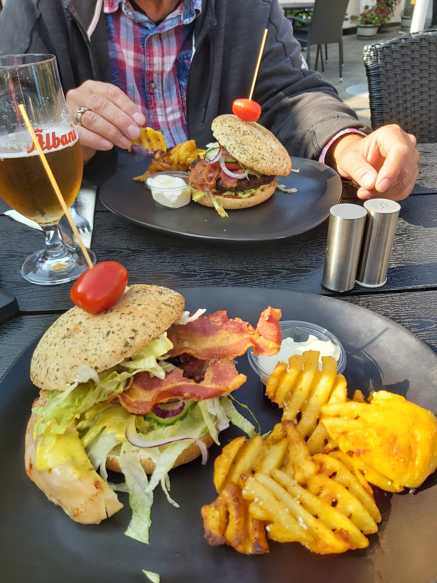 In den Fußgängerzonen und Geschäften herrscht reges Treiben, Abstände und Masken gibt’s nicht mehr. Wir fühlen uns unwohl, das ist zu doll. Wir suchen uns etwas zum draußen sitzen, das Café Skt. Gertrud. Der Burger und die Käse-/Wurstplatte waren gut, sogar das Bier schmeckte.