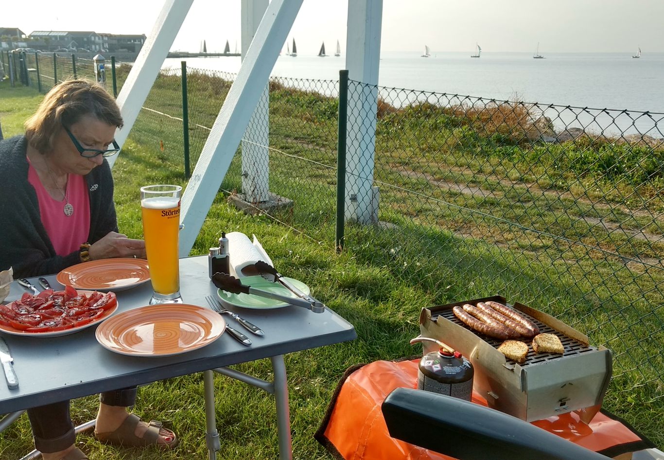 Um 11:30 Uhr erreichen wir den Stellplatz im Yachthafen. Der Platz ist fast leer, wir stehen direkt am Wasser.