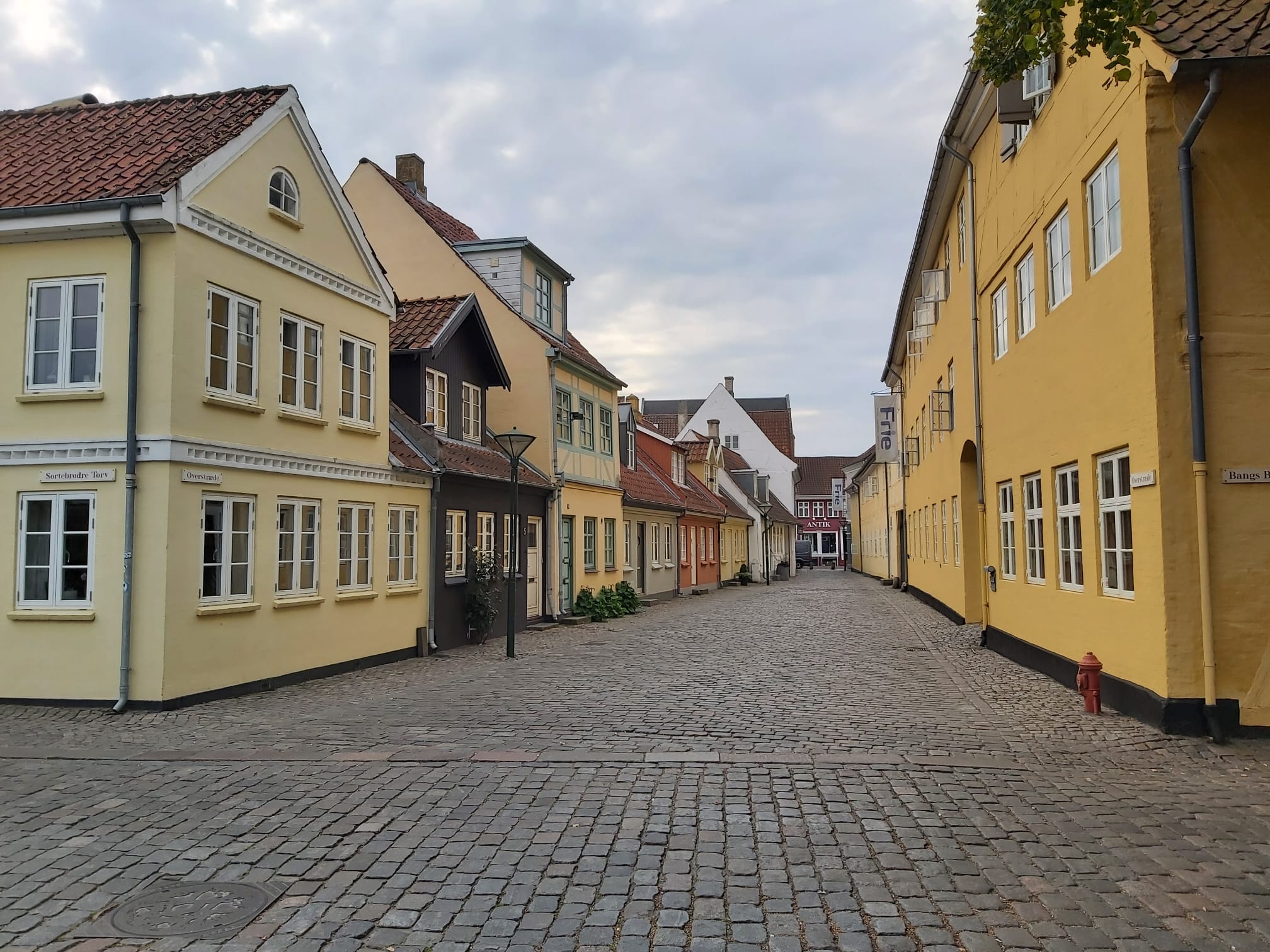 Laut Wetter App soll’s ab Mittwoch für mehrere Tage regnen und kälter werden. Also geht’s langsam Richtung Heimat. Zuerst schauen wir uns den Stellplatz am Hafen in Middelfart an. Der Ausblick auf den Sund und die große Brücke ist toll, aber direkt neben dem Platz ist eine große Baustelle, und auch der Ort sagt uns nicht so zu. Deshalb geht’s weiter in die älteste Stadt Dänemarks, nach Ribe.