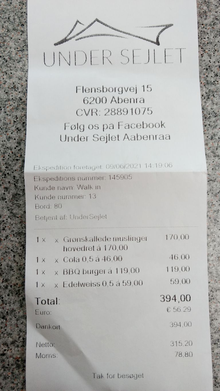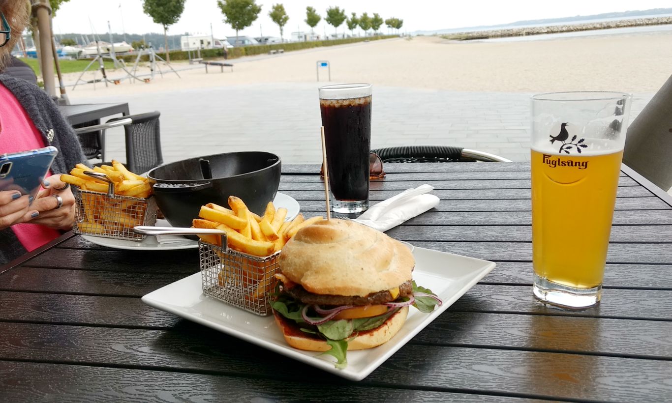 Bevor es in die City geht, müssen wir uns stärken: gleich neben dem Stellplatz am Strand im Restaurant Under Sejlet. Nicht ganz billig, aber lecker.