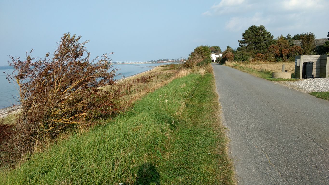 Am späten Nachmittag mache ich noch eine Radtour östlich von Bogense. Sie führt auf einer Länge von 4 bis 5 km an diversen Wochenendhäuschen und prunkvollen Villen direkt am Deich entlang.